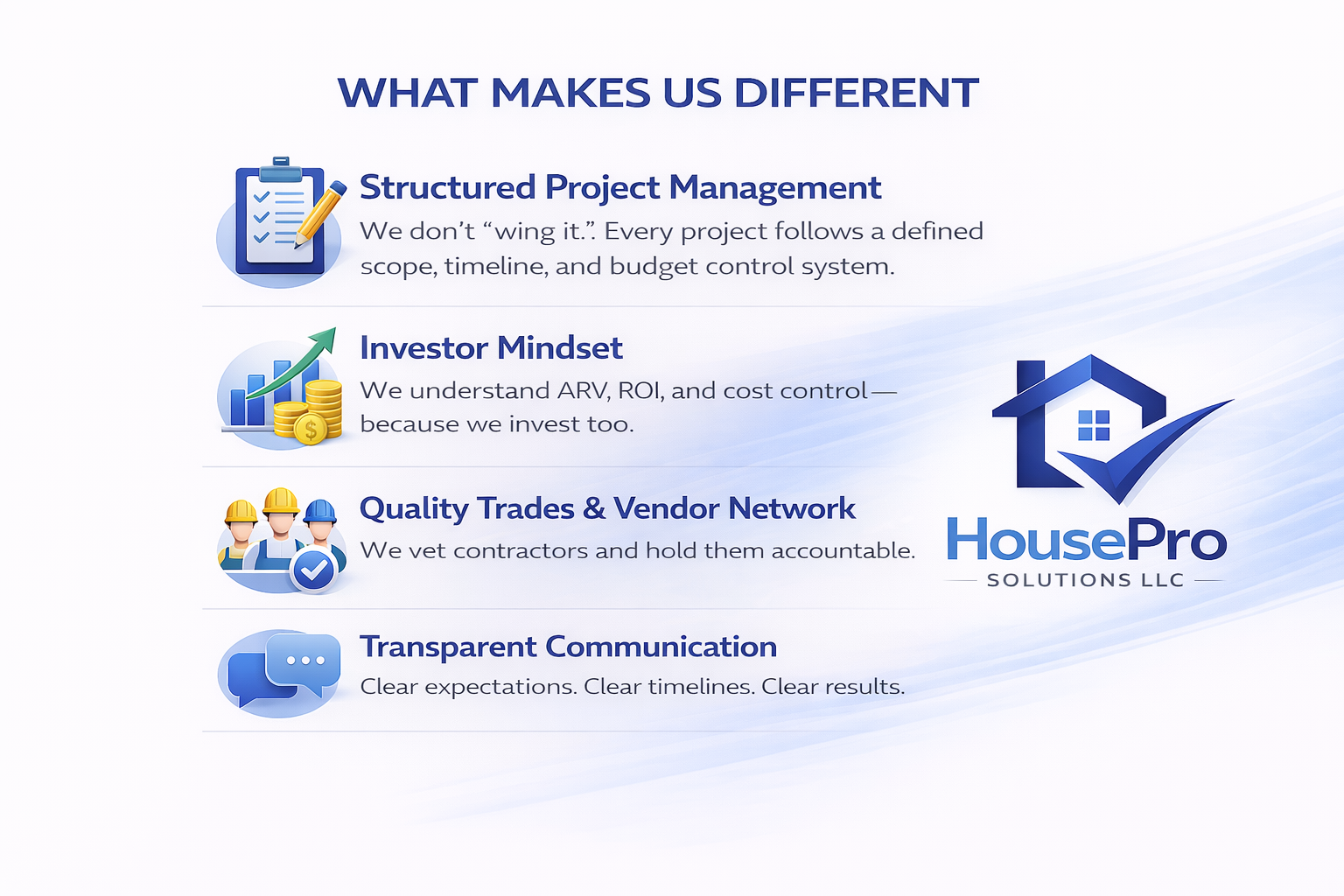 HousePro Solutions is a Chicagoland-based renovation and real estate investment company focused on transforming properties into high-performing assets.